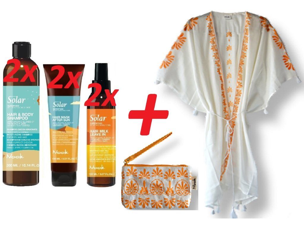 Nook Solar Hair & Body Shampoo 300ml - hydratační šampon na vlasy a tělo, jemně čistí a odstraňuje zbytky chlóru, písku, soli a opalovacích přípravků z těla a vlasů. Hydratuje a revitalizuje vlasy a pokožku hlavy nsmáhané pobytem na slunci