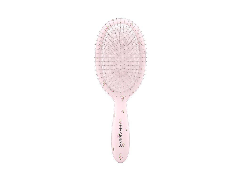 Kartáč z limitované kolekce Framar s květinovým designem má flexibilní štětiny, kterými šetrně rozčeše všechny druhy vlasů bez tahání.
