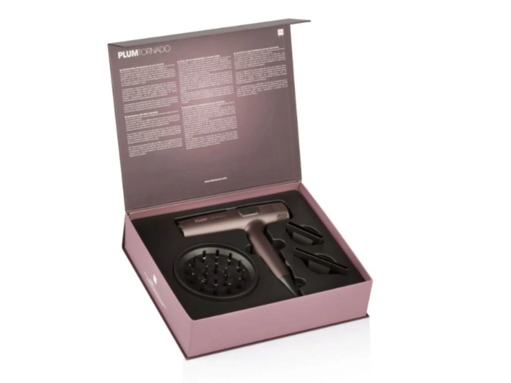 Plum Tornado je elegantní vysokorychlostní fén nejnovější generace řady Plum. Je vybaven inovativním a vysoce výkonným bezakumulátorovým digitálním iontovým motorem s rychlostí 110 000 ot./min., který zaručuje více než 2 000 hodin práce. Profesionální a ergonomický fén pro rychlé a efektivní, ale extrémně tiché a přizpůsobitelné sušení: má 3 nastavení proudění vzduchu + 4 teplotní s 12 možnými konfiguracemi.